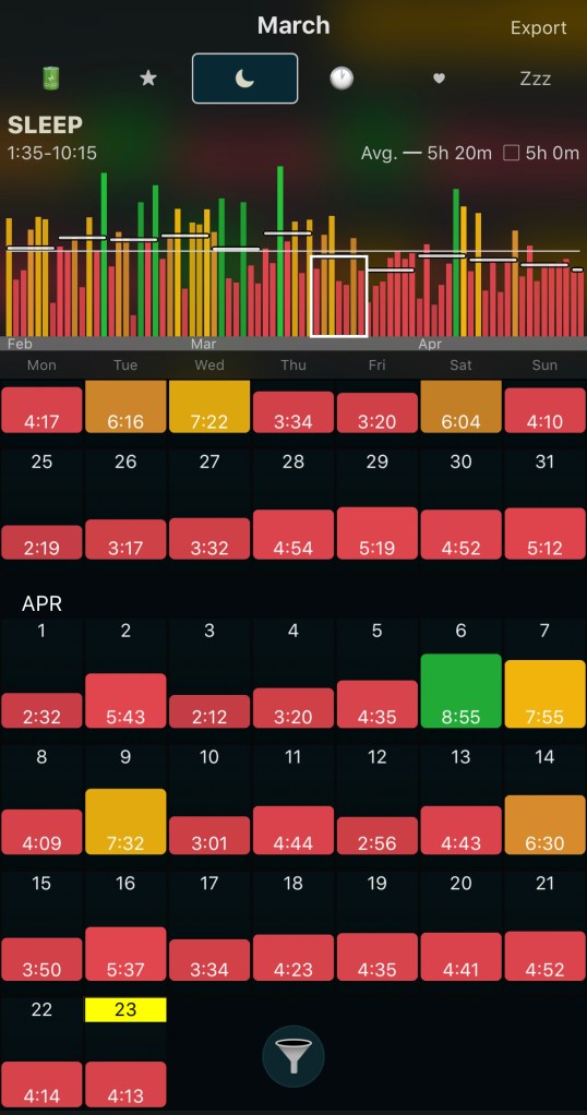 I also hope that my sleep gets better than my March-April records with only one 8-hour sleep (counting naps!).: